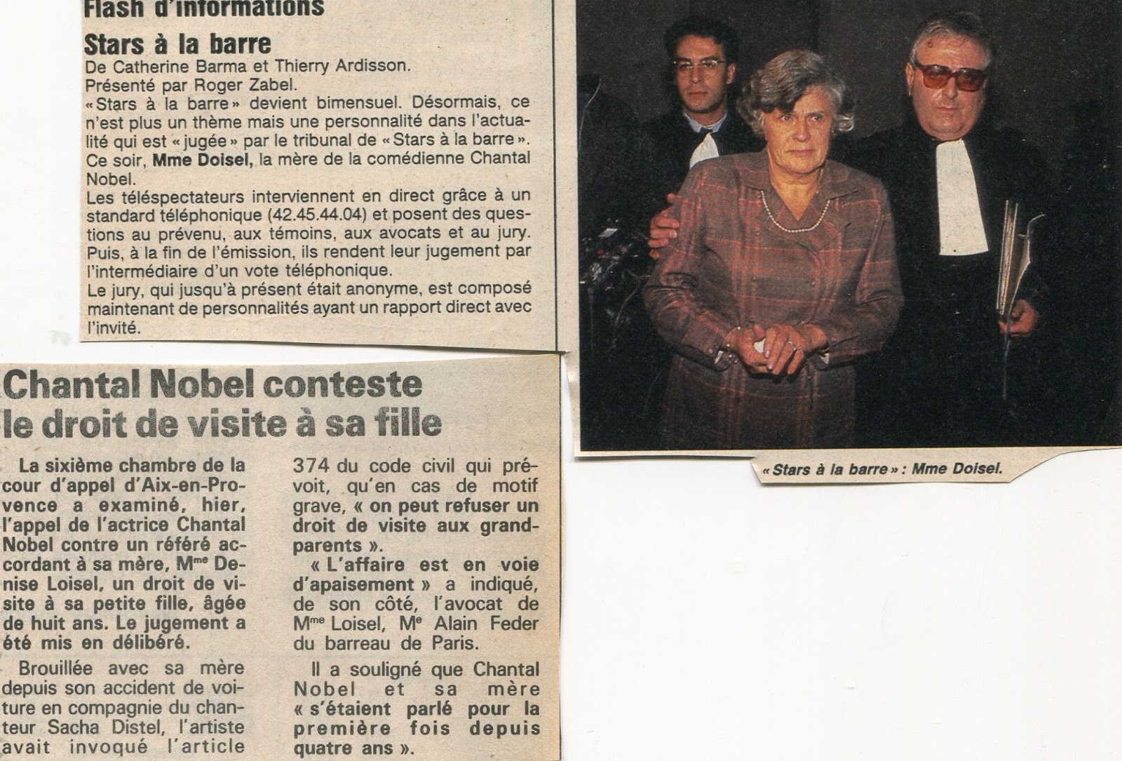 La version de Chantal Nobel divergeait de celle de Distel car elle affirma que la vitesse du véhicule était de 150. Compagne de Jacques-Henri Marin, dont elle a une fille : Alexandra, née en 1971 ; elle épouse ensuite Jean-Louis Julian, bijoutier à Saint-Tropez et Courchevel, avec qui elle vit.