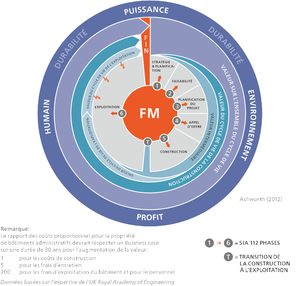 Cependant, le BLM couvre un champ d'application plus large. Le cycle de vie d'un bâtiment se compose de deux parties : la construction et l'exploitation. Dans la partie construction, nous avons toutes les disciplines qui contribuent à la construction effective de l'installation, y compris la planification, la conception, la conception.