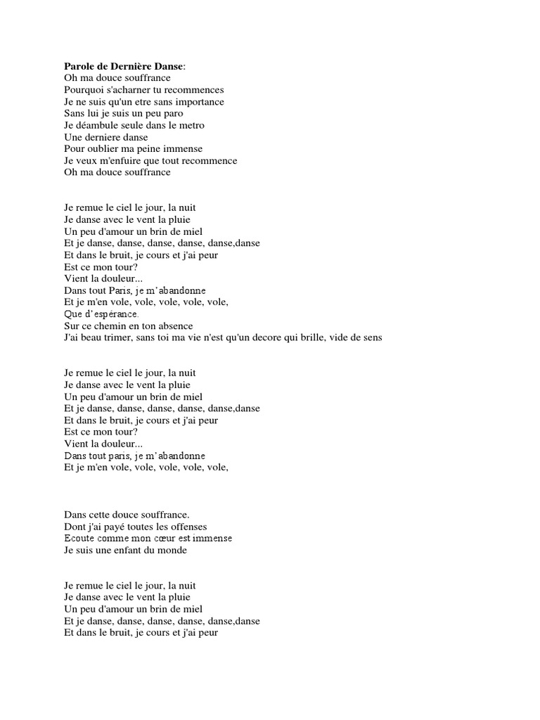 Parole de Dernière Danse PDF