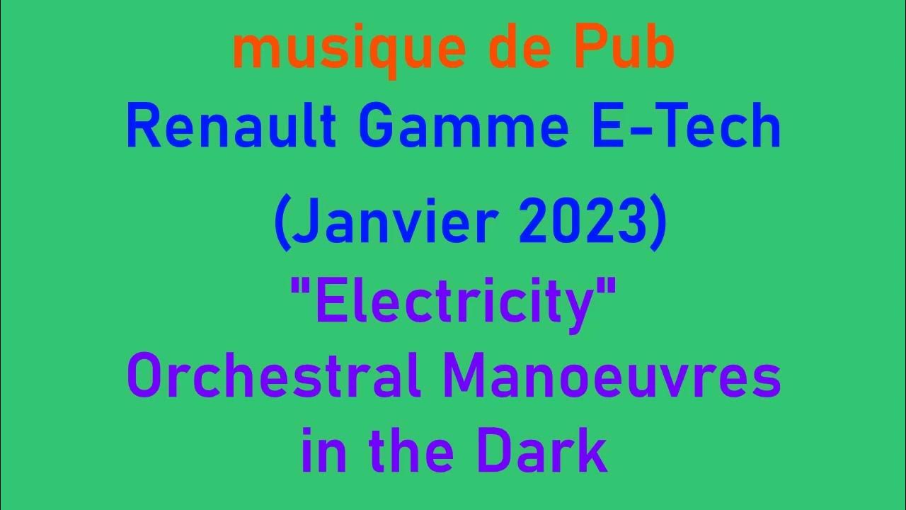 En réel, quoi. Merci Renault de remettre les points sur les E…tech. La musique de la pub Renault gamme E-Tech 100 % électriques est « Electricity » de Orchestral Manoeuvres in the Dark. La pub Renault gamme E-Tech 100 % électriques.