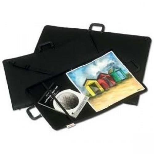 Carton à dessin, 500 x 720 mm • extérieur en kraft noir vernis • intérieur en garde noire assortie • 3 fermetures à ruban tissus • avec poignée intégrée • capacité jusqu'à 3 cm • dos renforcé et coins toilés • format à classer: 500 x 650 mm (format raisin) (538900E)