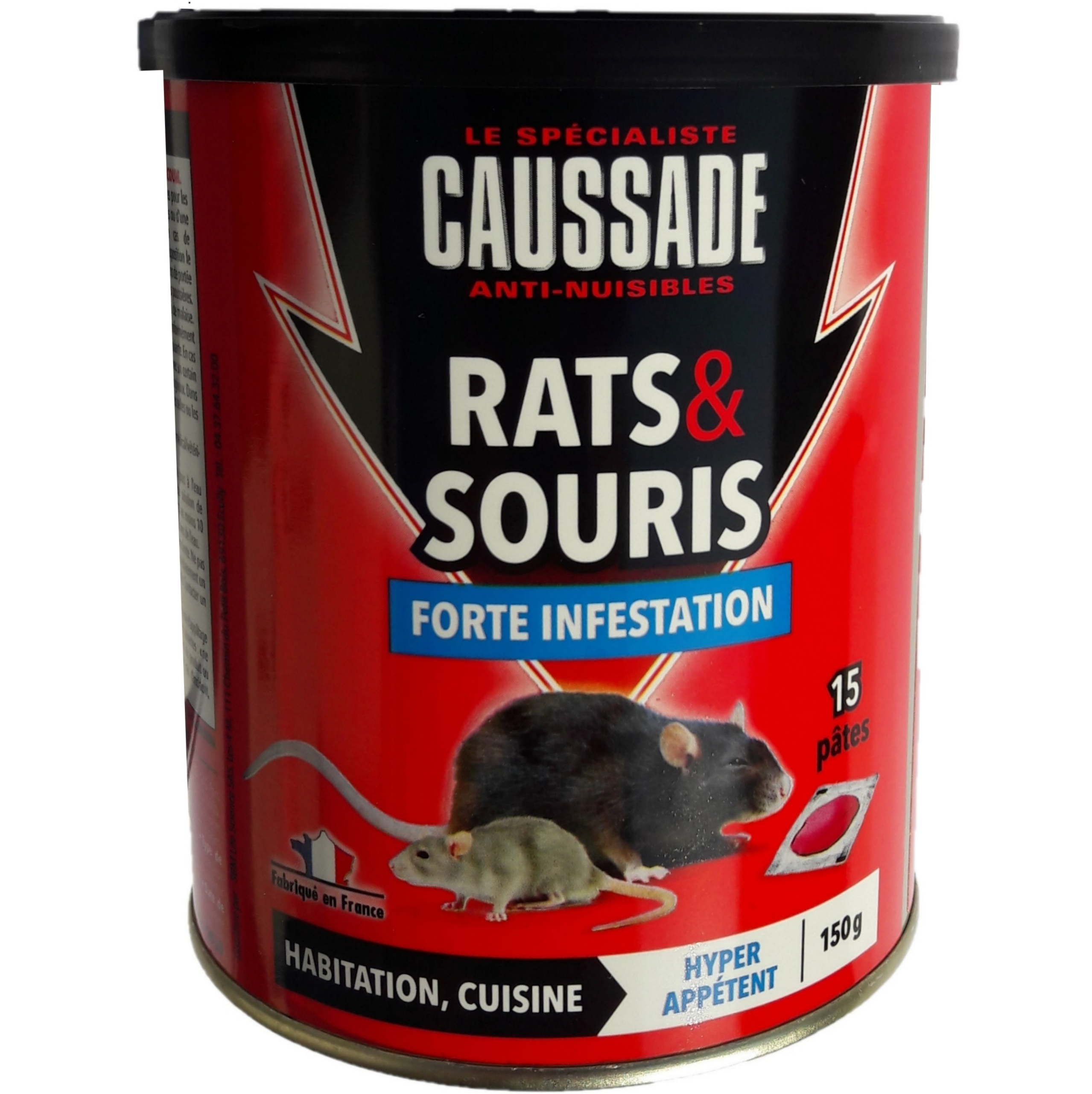 Pâte contre rats, souris. Forte infestation 150 grammes Caussade Vebaflor
